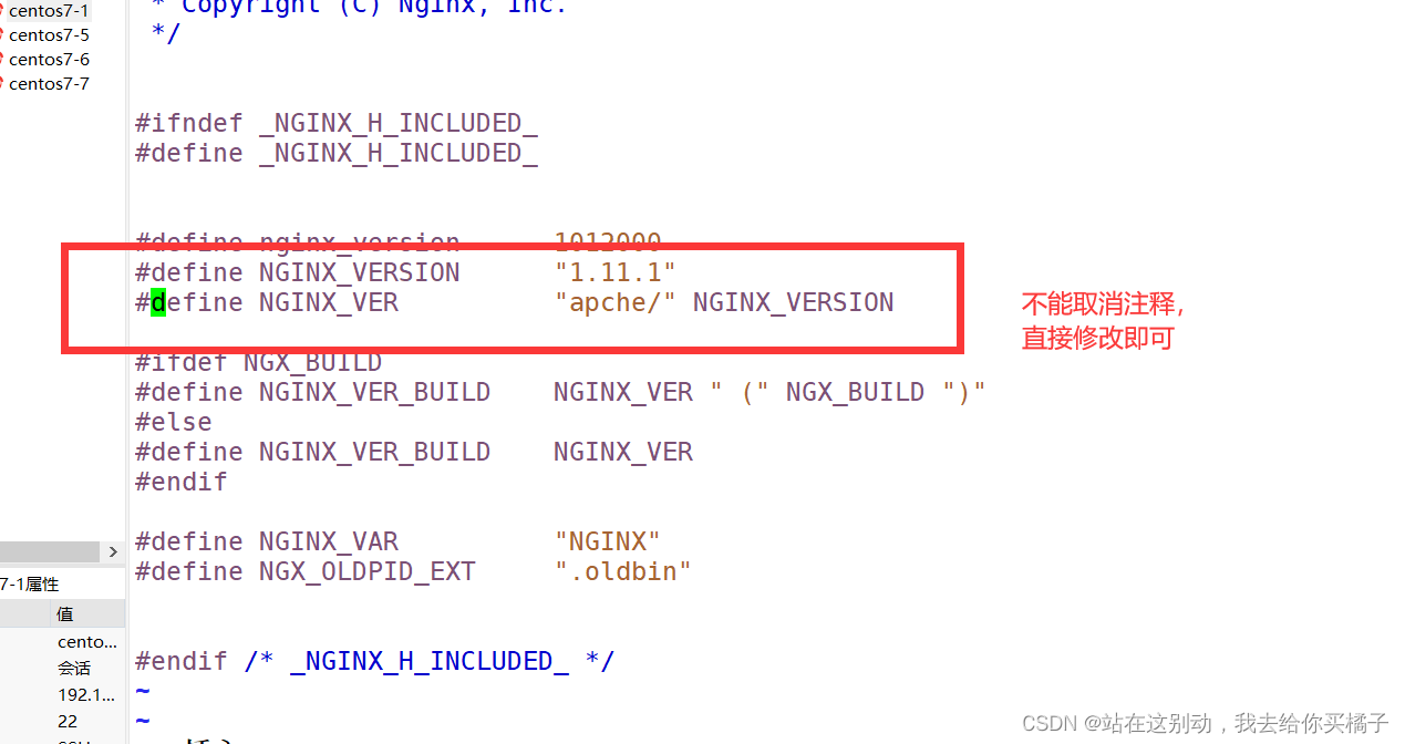 cd /opt/nginx-1.12.0/src/core/#修改前進(jìn)行備份cp nginx.h nginx.h.bak vimn ginx.h #define NGINX_VERSION "1.12.0"#define NGINX_VER "nginx/" NGINX_VERSION