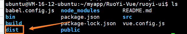 這里強(qiáng)烈建議將dist文件放在服務(wù)器里專門(mén)放項(xiàng)目的文件夾,后邊設(shè)置路徑的時(shí)候方便查找,比如我是放在了/home/ubuntu/myapp/ruoyi/ruoyi-ui的文件夾下