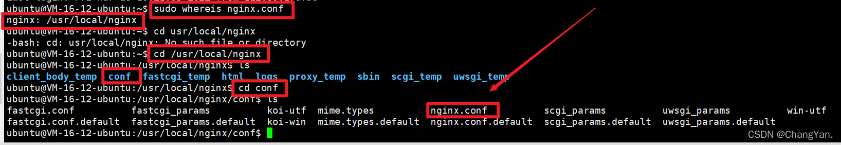 找到有nginx.conf文件的目錄,我們可以用sudo whereis nginx.conf找到該路徑然后進(jìn)入該目錄