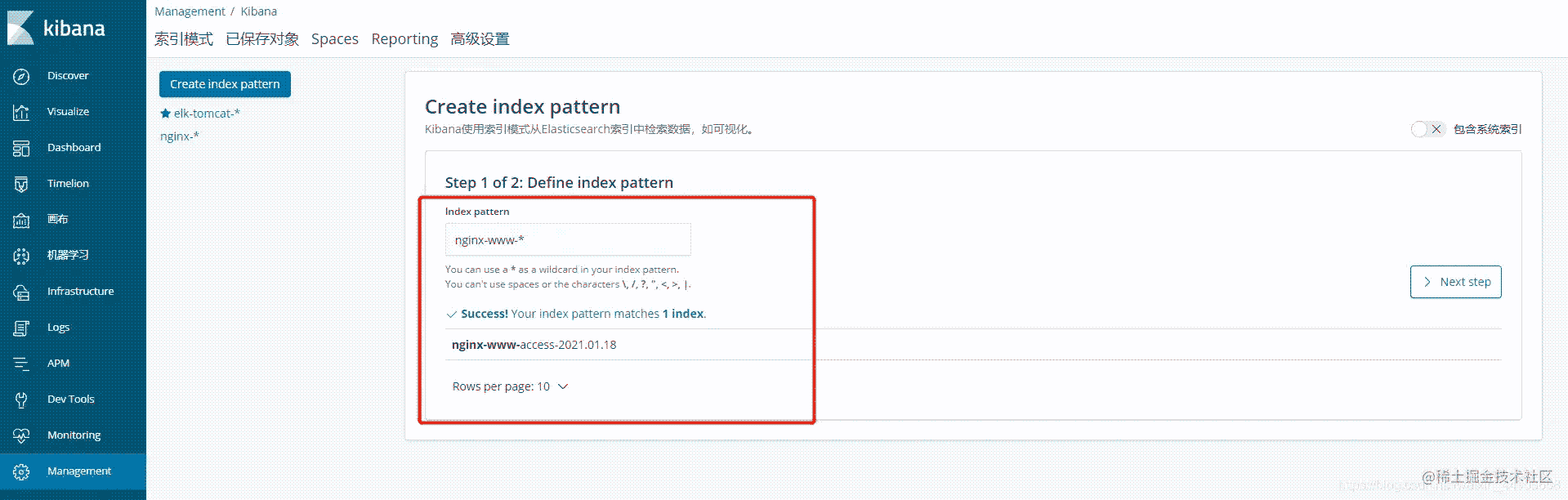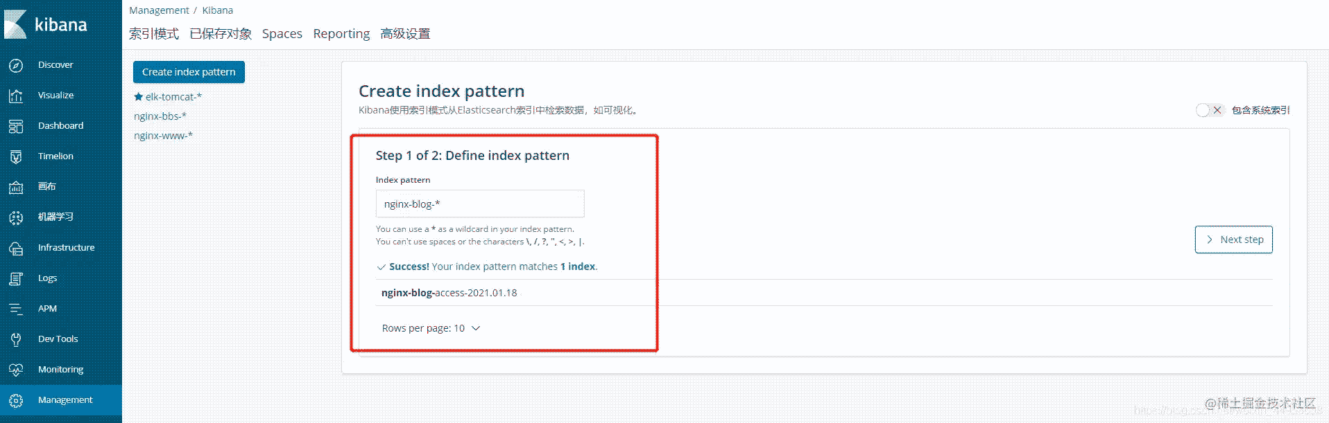 點擊Managerment----索引模式---創(chuàng)建索引