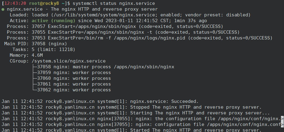 #nginx role項目目錄總覽[root@ansible-rocky opt]$ tree /opt/opt├── hosts_nginx├── nginx_role.yml└── roles └── nginx├── handlers│ └── main.yml├── tasks│ └── main.yml└── templates ├── nginx.conf.j2 └── nginx.service.j2#task文件[root@ansible-rocky roles]$ cat nginx/tasks/main.yml - name: add group nginx group: name=nginx system=yes gid=80- name: add user nginx user: name=nginx group=nginx uid=80 system=yes shell="/sbin/nologin" create_home=no- name: install dependent package yum: name={{item}} state=latest loop: - gcc - make - pcre-devel - openssl-devel - zlib-devel - perl-ExtUtils-Embed- name: get nginx source unarchive: src: "{{ url }}" dest: "/usr/local/src" remote_src: yes- name: compile and install shell: cmd: "./configure --prefix={{install_dir}} --user=nginx --group=nginx --with-http_ssl_module --with-http_v2_module --with-http_realip_module --with-http_stub_status_module --with-http_gzip_static_module --with-pcre --with-stream --with-stream_ssl_module --with-stream_realip_module && make && make install" chdir: "/usr/local/src/nginx-{{ version }}" creates: "{{install_dir}}/sbin/nginx"- name: config file template: src: nginx.conf.j2 dest: "{{install_dir}}/conf/nginx.conf" owner: nginx group: nginx notify: restart service tags: - config- name: create directory file: path: "{{install_dir}}/conf/conf.d" state: directory owner: nginx group: nginx- name: change install directory owner file: path: "{{install_dir}}" owner: nginx group: nginx recurse: yes- name: copy service file template: src: nginx.service.j2 dest: "/lib/systemd/system/nginx.service"- name: check config shell: cmd: "{{install_dir}}/sbin/nginx -t" register: check_nginx_config changed_when: - check_nginx_config.stdout.find("successful") - false- name: start service systemd: daemon_reload: yes name: nginx.service state: started enabled: yes #創建handler文件[root@ansible-rocky roles]$ cat nginx/handlers/main.yml - name: restart service service: name: nginx state: restarted#裝備兩個template文件[root@ansible-rocky roles]$ cat nginx/templates/nginx.conf.j2 user nginx;worker_processes {{ ansible_processor_vcpus*2 }};events { worker_connections 1024;}http { include mime.types; default_type application/octet-stream; log_format access_json "{"@timestamp":"$time_iso8601","""host":"$server_addr","""clientip":"$remote_addr","""size":$body_bytes_sent,"""responsetime":$request_time,"""upstreamtime":"$upstream_response_time","""upstreamhost":"$upstream_addr","""http_host":"$host","""uri":"$uri","""xff":"$http_x_forwarded_for","""referer":"$http_referer","""tcp_xff":"$proxy_protocol_addr","""http_user_agent":"$http_user_agent","""status":"$status"}"; # logging access_log {{install_dir}}/logs/access-json.log access_json; error_log {{install_dir}}/logs/error.log warn; keepalive_timeout 65; include {{install_dir}}/conf/conf.d/*.conf;}[root@ansible-rocky roles]$ cat nginx/templates/nginx.service.j2 [Unit]Description=The nginx HTTP and reverse proxy serverAfter=network.target remote-fs.target nss-lookup.target[Service]Type=forkingPIDFile={{install_dir}}/logs/nginx.pidExecStartPre=/bin/rm -f {{install_dir}}/logs/nginx.pidExecStartPre={{install_dir}}/sbin/nginx -tExecStart={{install_dir}}/sbin/nginxExecReload=/bin/kill -s HUP \$MAINPIDKillSignal=SIGQUITTimeoutStopSec=5KillMode=processPrivateTmp=true LimitNOFILE=100000[Install]WantedBy=multi-user.target#在hosts文件中定義wensrvs需要的變量[root@ansible-rocky opt]$ cat hosts_nginx [websrvs]10.0.0.18[websrvs:vars]version="1.22.1"url="http://nginx.org/download/nginx-{{ version }}.tar.gz"install_dir="/apps/nginx"#在playbook中調用角色[root@ansible-rocky opt]$ cat nginx_role.yml - hosts: websrvs remote_user: root roles: - nginx #運行playbook[root@ansible-rocky opt]$ ansible-playbook -i hosts_nginx nginx_role.yml PLAY [websrvs] ****************************************************************************************TASK [Gathering Facts] ********************************************************************************ok: [10.0.0.18]TASK [nginx : add group nginx] ************************************************************************changed: [10.0.0.18]TASK [nginx : add user nginx] *************************************************************************changed: [10.0.0.18]TASK [nginx : install dependent package] **************************************************************changed: [10.0.0.18] => (item=gcc)ok: [10.0.0.18] => (item=make)changed: [10.0.0.18] => (item=pcre-devel)changed: [10.0.0.18] => (item=openssl-devel)ok: [10.0.0.18] => (item=zlib-devel)changed: [10.0.0.18] => (item=perl-ExtUtils-Embed)TASK [nginx : get nginx source] ***********************************************************************changed: [10.0.0.18]TASK [nginx : compile and install] ********************************************************************changed: [10.0.0.18]TASK [nginx : config file] ****************************************************************************changed: [10.0.0.18]TASK [nginx : create directory] ***********************************************************************changed: [10.0.0.18]TASK [nginx : change install directory owner] *********************************************************changed: [10.0.0.18]TASK [nginx : copy service file] **********************************************************************changed: [10.0.0.18]TASK [nginx : check config] ***************************************************************************ok: [10.0.0.18]TASK [nginx : start service] **************************************************************************changed: [10.0.0.18]RUNNING HANDLER [nginx : restart service] *************************************************************changed: [10.0.0.18]PLAY RECAP ********************************************************************************************10.0.0.18 : ok=13 changed=11 unreachable=0 failed=0 skipped=0 rescued=0 ignored=0在被控制端檢查是否安裝完成