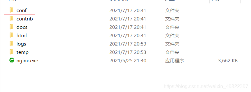 4、進入conf文件夾,找到nginx.conf打開進行配置