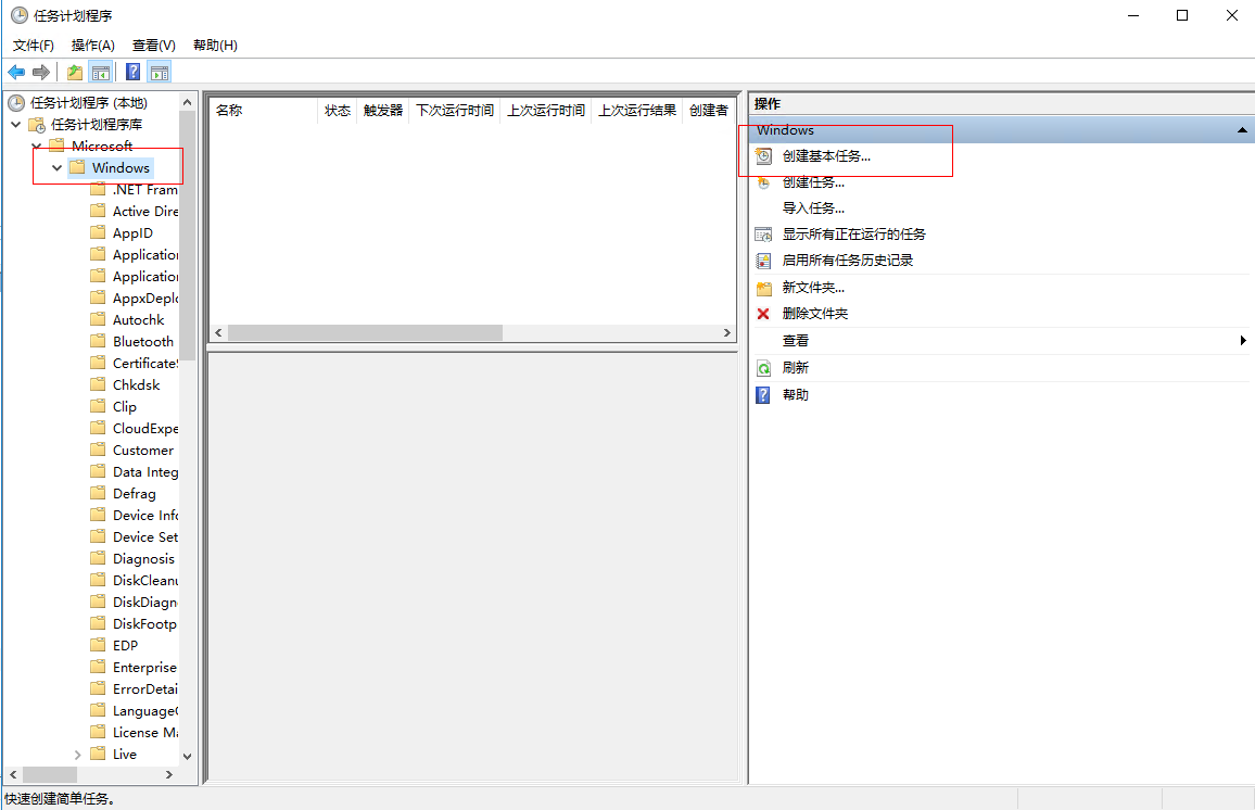 2、找到windows目錄,在當下目錄創建新任務