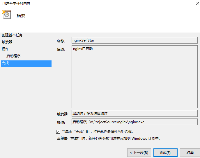 - 二、通過windows程序計劃設定nginx開機自啟動、