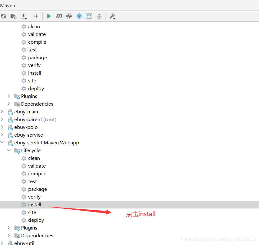 如果是maven項(xiàng)目的話,首先先點(diǎn)擊如下的命令,執(zhí)行install