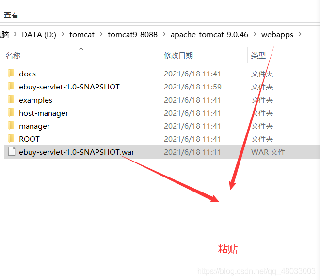 然后到tomcat的webapps下進(jìn)行粘貼,如下圖