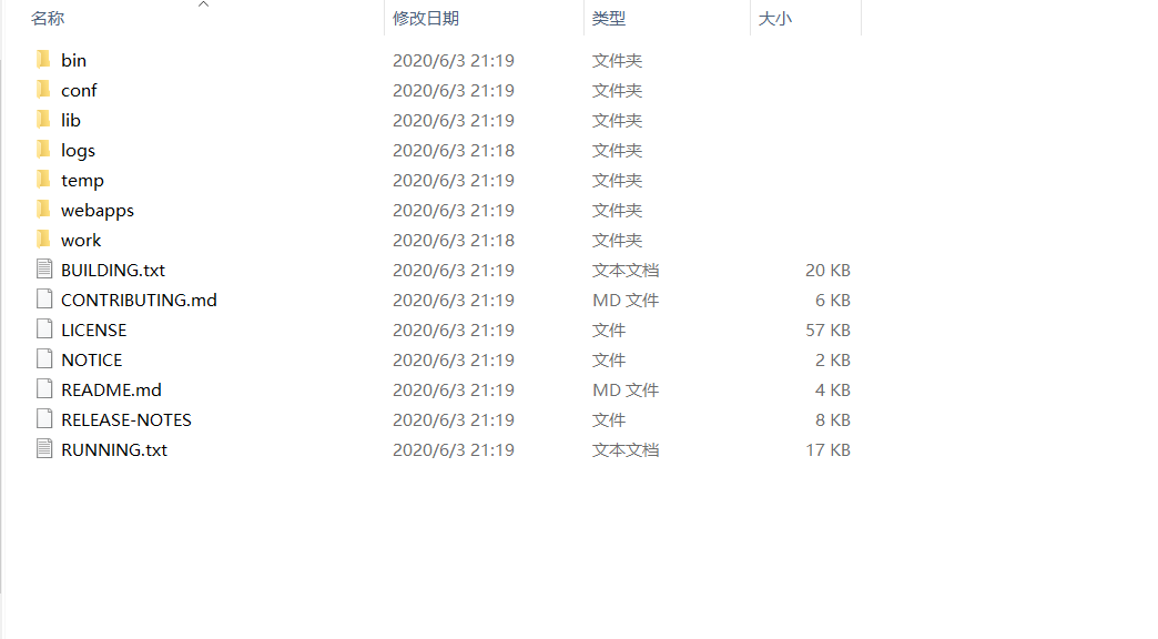 注意: 上面文件夾apache-tomcat-8.5.57-src里面有的,就剪切過來,沒有的就新建一個, bin conf webapps 應該是從apache-tomcat-8.5.57-src剪切過來的