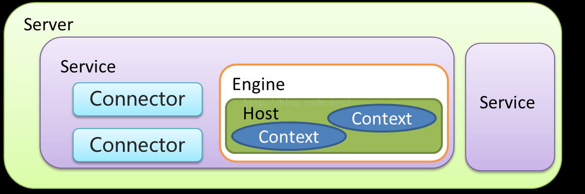 服務:將多個connector 與一個Engine組合成一個服務,可以配置多個服務。