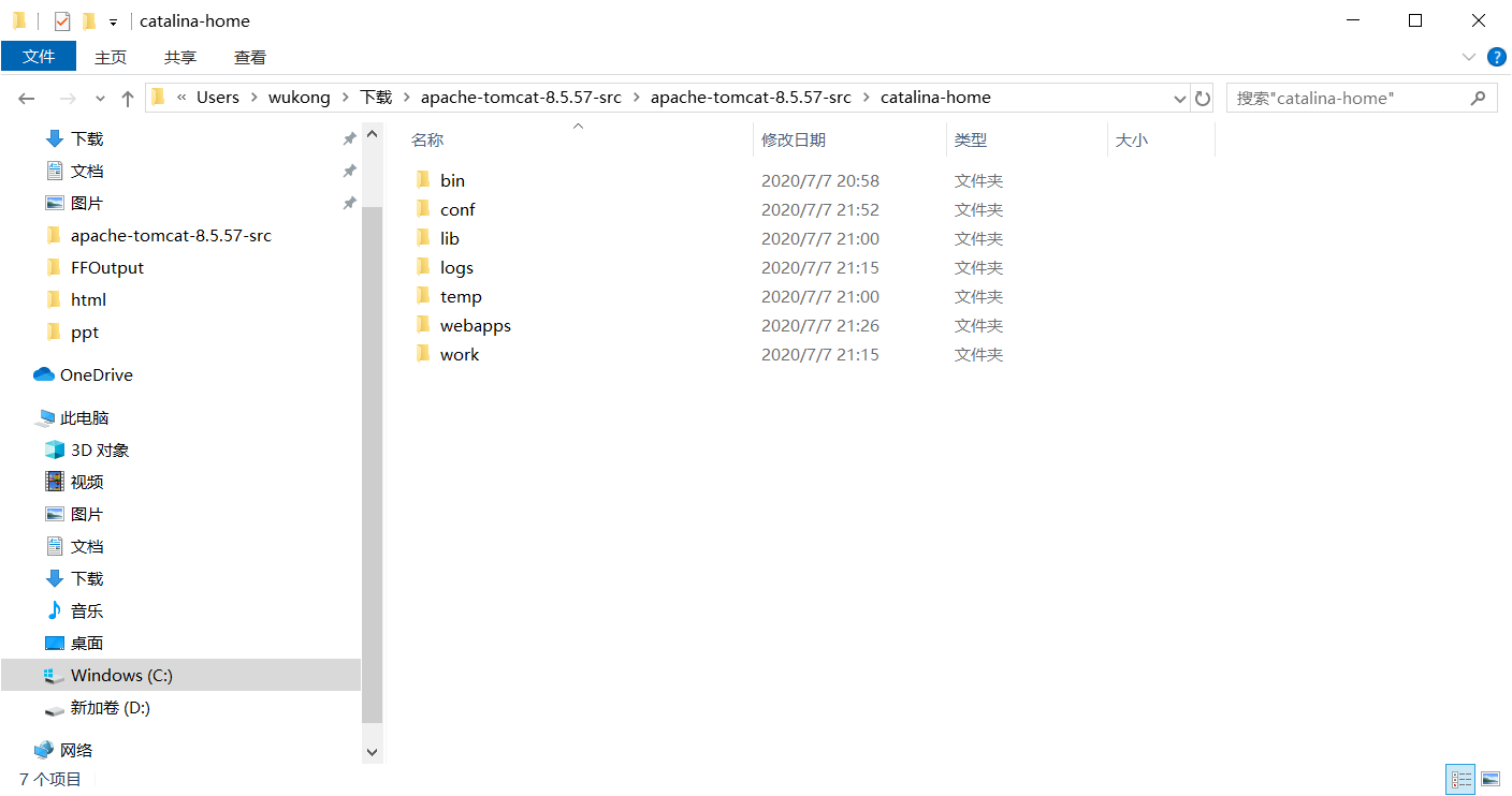 3.在apache-tomcat-8.5.57-src 同級目錄新建 catalina-home并保證目錄下面文件如下