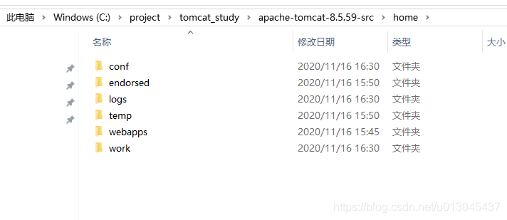 在tomcat的源碼文件夾下面創建home目錄,把源碼中的conf目錄和webapps目錄剪切到其中(其他新建的目錄如logs等),另外新建maven的pom.xml文件。