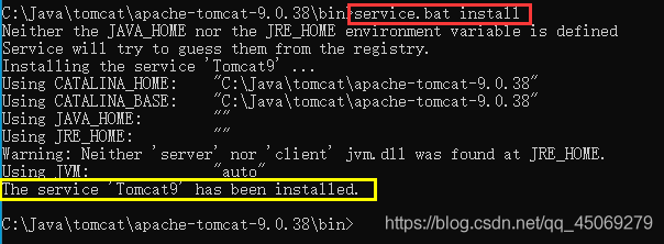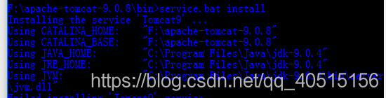 再進入到tomcat的 bin 目錄中,輸入service.bat install