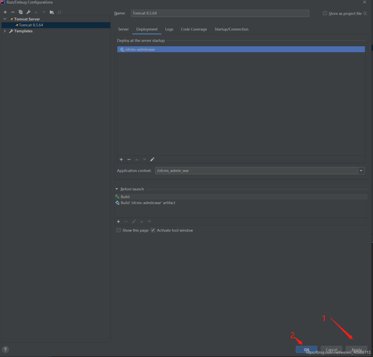 5.然后再點擊Deployment,再點擊下面的加號【+】,選擇要啟動的war包,沒有war包,請先maven打包。選擇后,先點擊Applly,再點擊OK。