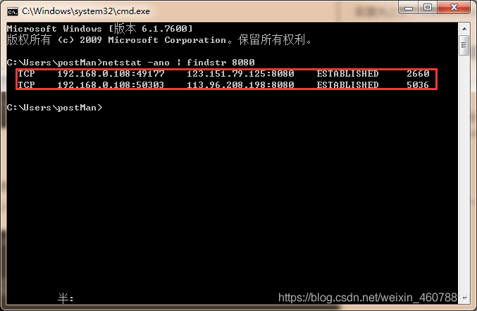 來查看當前是否有進程占用了端口