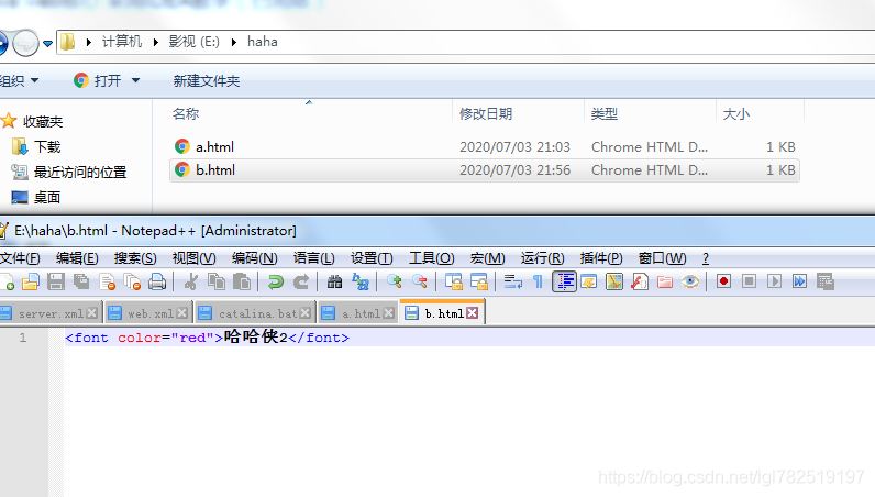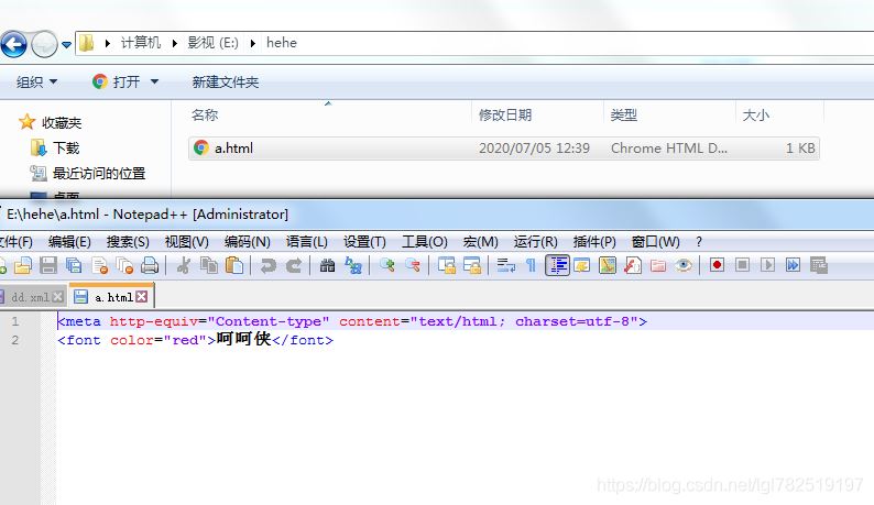 在E盤的文件夾里面定一個hehe項目,里面只有a.html文件,文件內容為你紅色字:呵呵俠