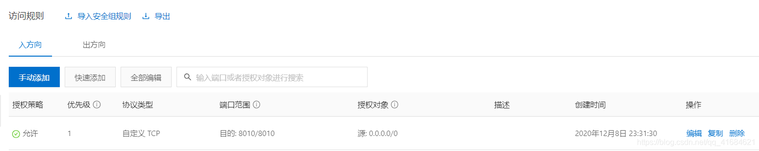 注意:云服務器上安全組要打開 8010 端口號 且 防火墻也要放行 8010