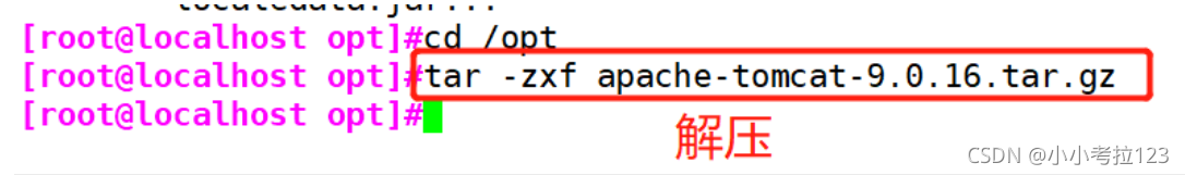 切換至/opt下,解壓tomcat包