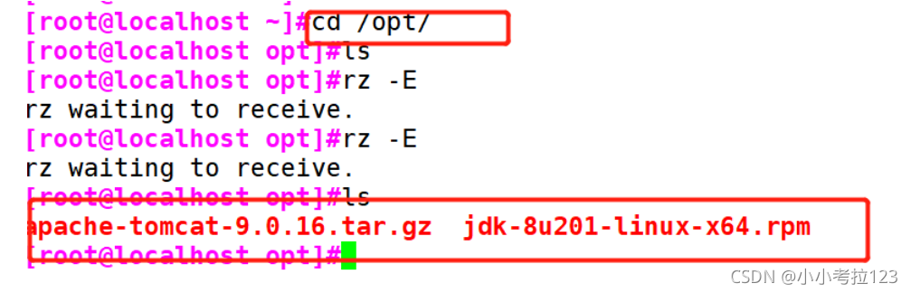切換至opt目錄,將下載好的壓縮包傳進來