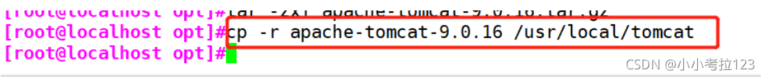 1. #切換至/opt下,解壓tomcat包cd /opttar -zxf apache-tomcat-9.0.16.tar.gz ?2. #新建文件夾/usr/local/tomcatmkdir /usr/local/tomcat 3. #將解壓后的包拷貝至/usr/local/下并重命名cp -a apache-tomcat-9.0.16 /usr/local/tomcat/tomcat1cp -a apache-tomcat-9.0.16 /usr/local/tomcat/tomcat2