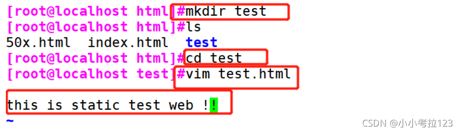 創建test文件夾,并在里面創建靜態網頁