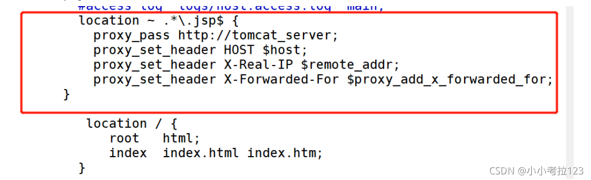 1. #切換至/usr/local/nginx/html/目錄下cd /usr/local/nginx/html/?2. #創建test文件夾,并在里面創建靜態網頁mkdir testcd testvim test.htmlthis is static test web !!?3. #拖一張圖片至test下改名為1.jpgmv 1.jfif 1.jpg?4. #配置主配置文件vim /usr/local/nginx/conf/nginx.conf?#配置負載均衡服務器列表,weight參數表示權重,權重越高,被分配到的概率越大 ?#gzip on; ? ? upstream tomcat_server { ? ? ? ? ? ? ? ? ? server 192.168.59.105:8080 weight=1; ? ? ? ? ? ? ? ? ? server 192.168.59.118:8080 weight=1; ? ? ? ? ? ? ? ? ? ? ? ? ? ? ? ? ? } ? ? ? ? ? ? ? ? ? ? ? ? ? ? ? ? ? ? ? ?#動靜分離 location ~ .*.jsp$ { ? ? ? ? proxy_pass http://tomcat_server; ? ? ? ? proxy_set_header HOST $host; ? ? ? ? proxy_set_header X-Real-IP $remote_addr; ? ? ? ? proxy_set_header X-Forwarded-For $proxy_add_x_forwarded_for; ? ? }?#靜態圖片正則 ? ? ? ? location ~* .*.(jpg|html|png|gif)$ { ? ? ? ? root /usr/local/nginx/html/test; ? ? }?? ? ? ? ? location / { ? ? ? ? ? root ? html; ? ? ? ? ? index index.html index.htm; ? ? }???5. ?#重啟nginx并測試http://192.168.59.108/1.jpghttp://192.168.59.108/test.html切換至cd /usr/local/nginx/html/目錄下