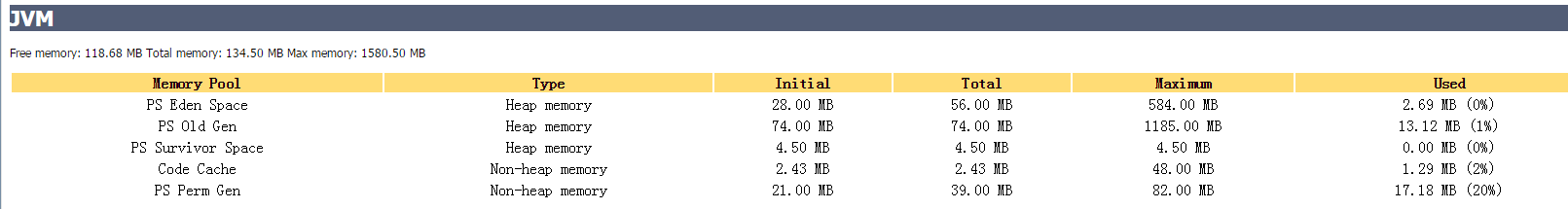 2、JVM的信息 (默認的這些值都很低,我們可以配置)