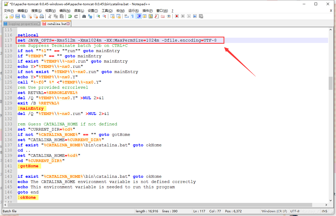 set JAVA_OPTS=-Xms512m -Xmx1024m -XX:MaxPermSize=1024m -Dfile.encoding=UTF-8