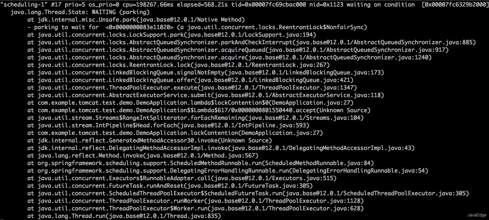打開55790.log,定位到第4步中找到的名為 scheduling-1 的線程,其線程棧:
