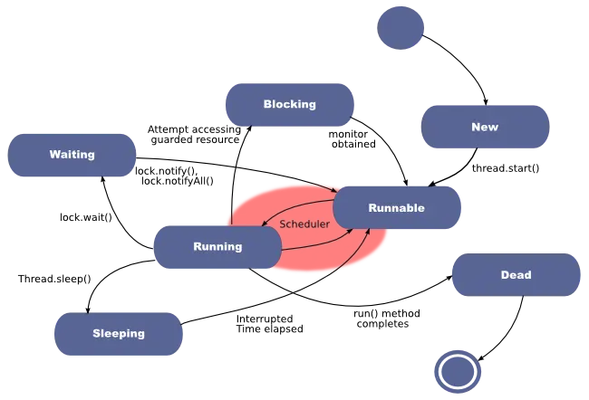 - Waiting指的是一個線程拿到了鎖,但需等待其他線程執(zhí)行某些操作。比如調(diào)用了Object.wait、Thread.join或LockSupport.park方法時,進入Waiting狀態(tài)。前提是這個線程已經(jīng)拿到鎖了,并且在進入Waiting狀態(tài)前,os層面會自動釋放鎖,當(dāng)?shù)却龡l件滿足,外部調(diào)用了Object.notify或者LockSupport.unpark方法,線程會重新競爭鎖,成功獲得鎖后才能進入到Runnable狀態(tài)繼續(xù)執(zhí)行。