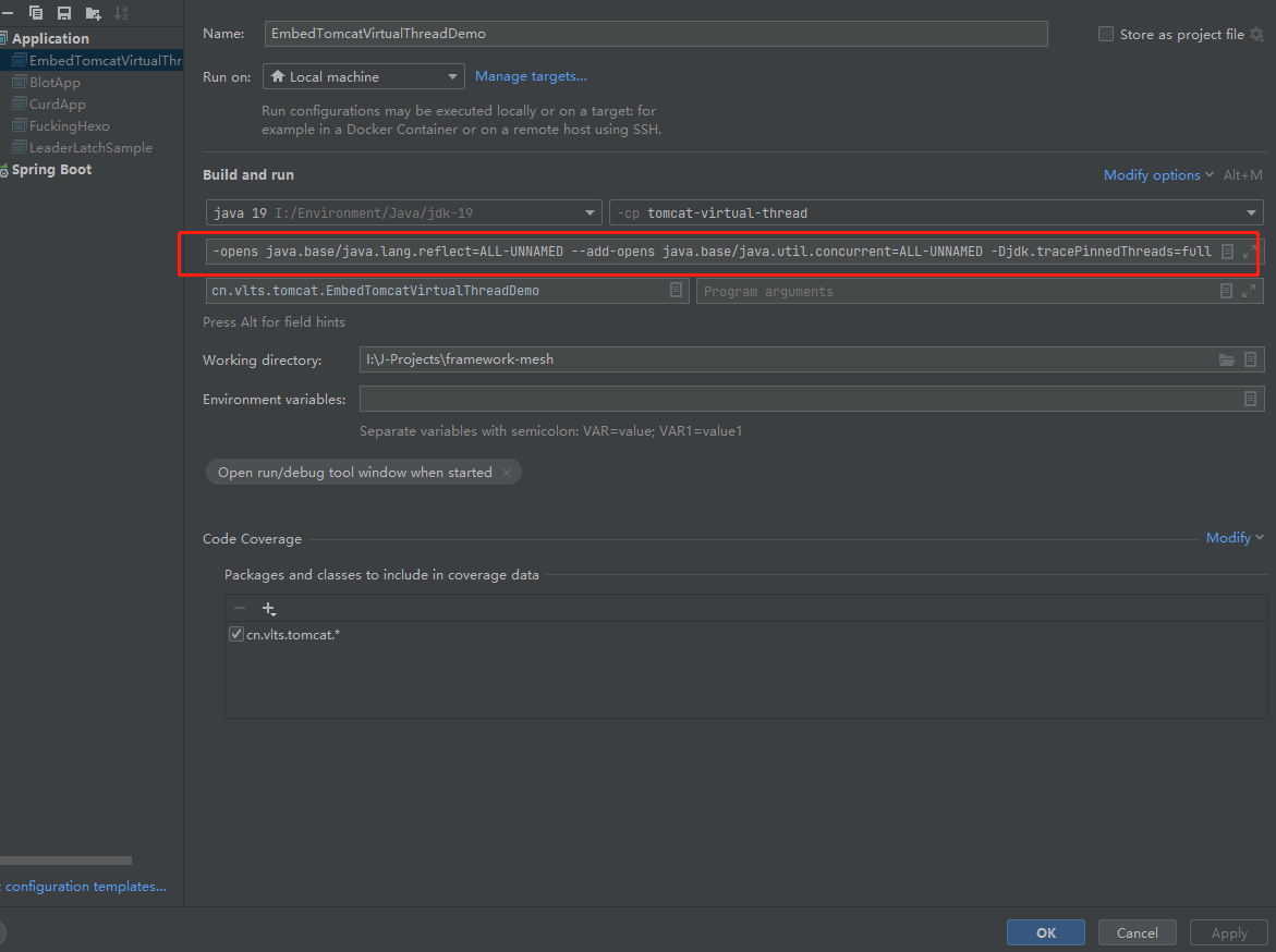 為了使用反射調用一些java.base模塊下沒開放的依賴包和跟蹤虛擬線程棧,程序運行時候加入下面的VM參數: