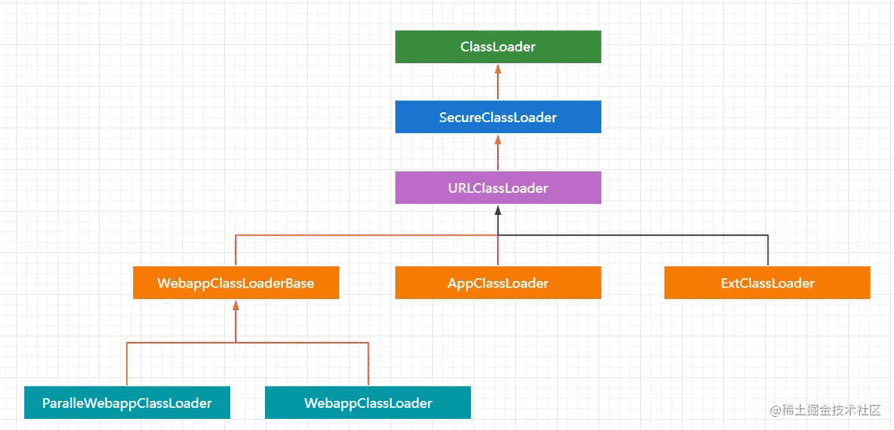 所以AppClassLoader沒有繼承自 ExtClassLoader,WebappClassLoader也沒有繼承自AppClassLoader。