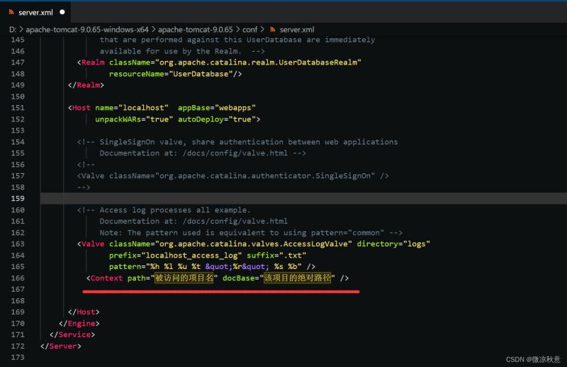 - < Context path="被訪問時的項目名" docBase="該項目的絕對路徑" />
