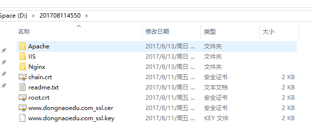 我花了一塊錢(一年)在愛名網購買了一個Symantec Basic DV 證書。下載證書解壓之后是這個樣子的: