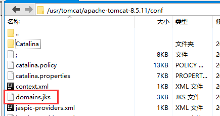 先把domains.jks證書上傳到Tomcat的conf文件夾下: