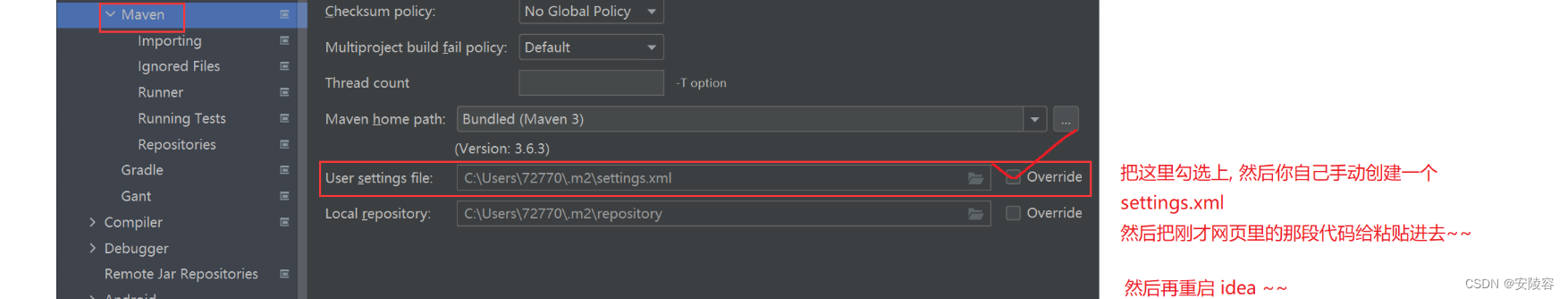 - 把這里的 maven 標簽頁下的這個 xml 配置給復制下來~~