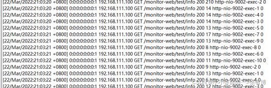 server: tomcat: accesslog: enabled: true#是否開啟日志 directory: /home/admin/arpro-backend-prod/logs/arpro-monitor #日志存儲目錄 pattern: '%t %a %A %m %U%q %s %D %I %B' #日志格式 prefix: TomcatAccess#日志文件前綴 rename-on-rotate: true #是否啟用日志輪轉2.查看磁盤上的日志文件