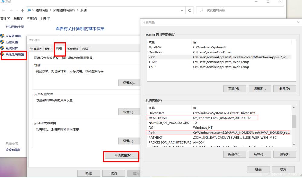 ②我的電腦,右鍵-屬性,高級系統(tǒng)設置,高級頁簽中的環(huán)境變量。