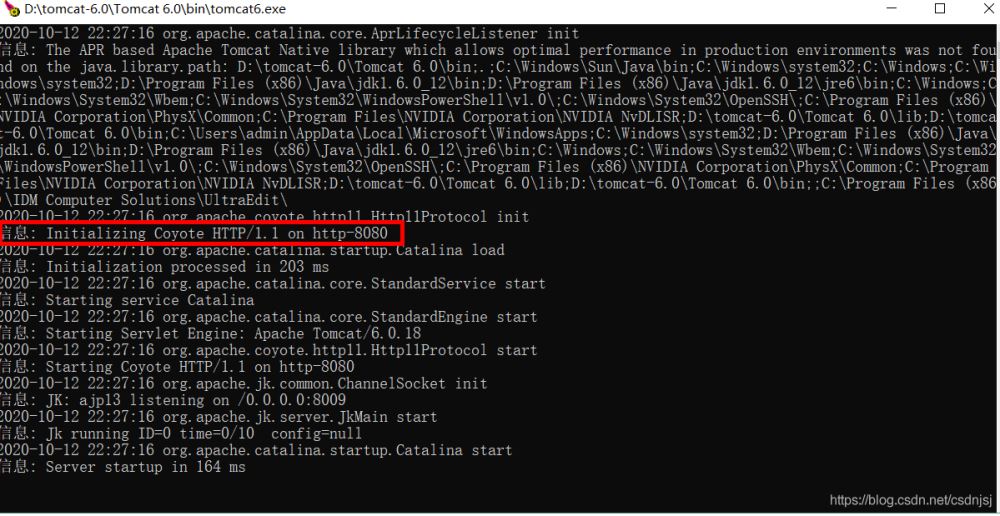 Tomcat安裝時默認端口即為8080。在啟動tomcat6.exe時,可以查看到服務器的監(jiān)聽的端口為:8080