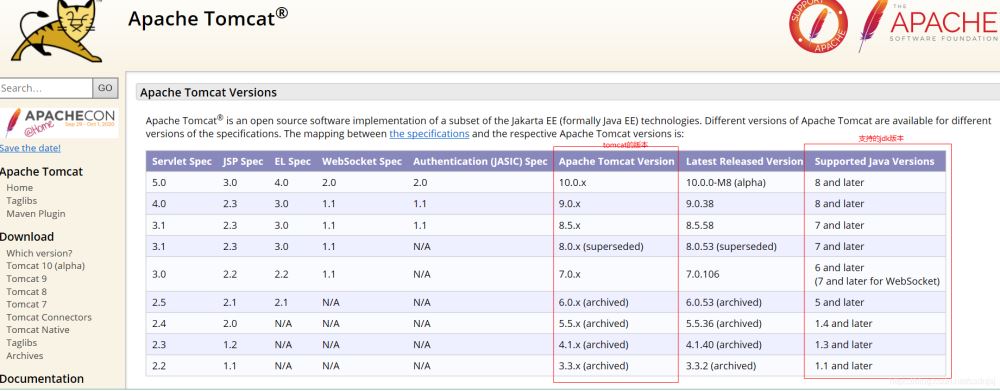 tomcat官方支持版本地址,http://tomcat.apache.org/whichversion.html