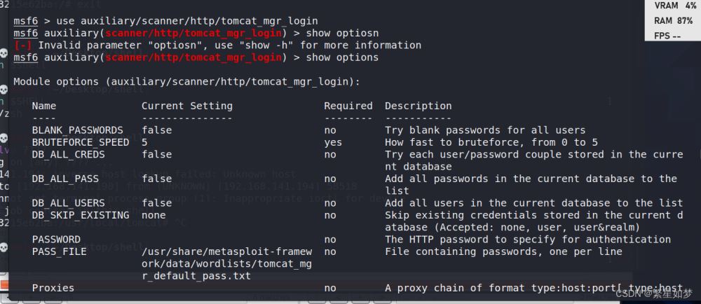 可以看到用戶名和密碼在都是tomcat的時候爆破成功,而且可以看到msf應該是自帶了繞過防爆破腳本,而且可以通過自定義user和password文件進行測試,所以作者更推薦使用msf爆破方式