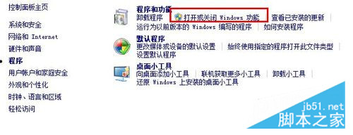 在打開的面板中,找到打開或關(guān)閉windows功能