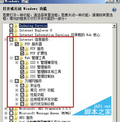 你會看到internet信息服務(wù),將其子目錄下的各項服務(wù)都打勾,點擊確定,保存設(shè)置。