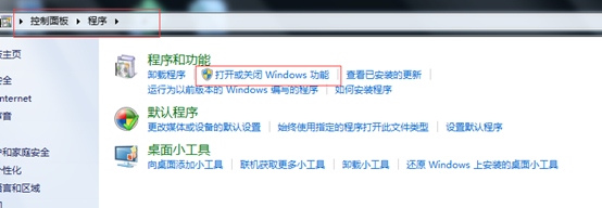 其次我們找到控制面板>程序>打開或關閉windows功能