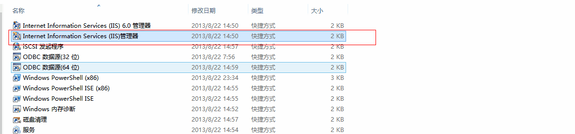 由于我的電腦已將安裝了IIS服務所以找不到了,不知道你電腦有沒有安裝可以在 控制面板\所有控制面板項\管理工具中查看