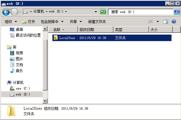 4.接著在D盤下創建一個“LocalUser”目錄