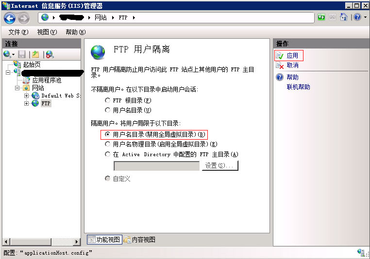 7.FTP創建完之后,選擇“FTP用戶隔離”