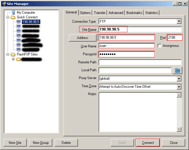 9.測試,首先創建一個系統用戶“xuan”用戶名,密碼:“123456”,可以把用戶組設為“Guests”組,并在D盤LocalUser目錄創建一個“xuan”目錄,分配“xuan”用戶對“xuan”目錄所有權限。接下來填寫客戶端的FTP,IP、端口、用戶名、密碼填寫好了點鏈接。