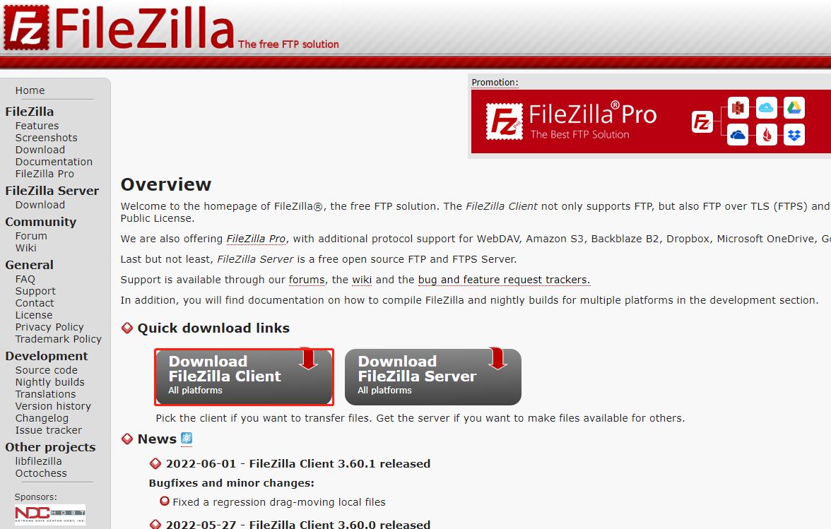 FileZilla 包括FileZilla客戶端和FileZilla Server。