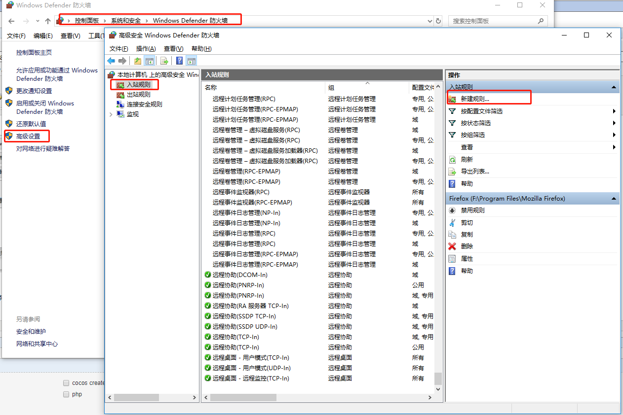 按照上面設置基本沒問題,然后會發現還是沒拉取到遠程服務器的文件列表。這個時候就需要找到win下防火墻的設置。如下圖