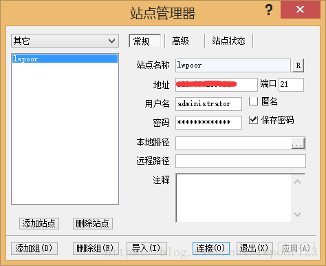 輸入服務(wù)器ip,登錄服務(wù)器時的用戶名和密碼鏈接,默認(rèn)端口是21