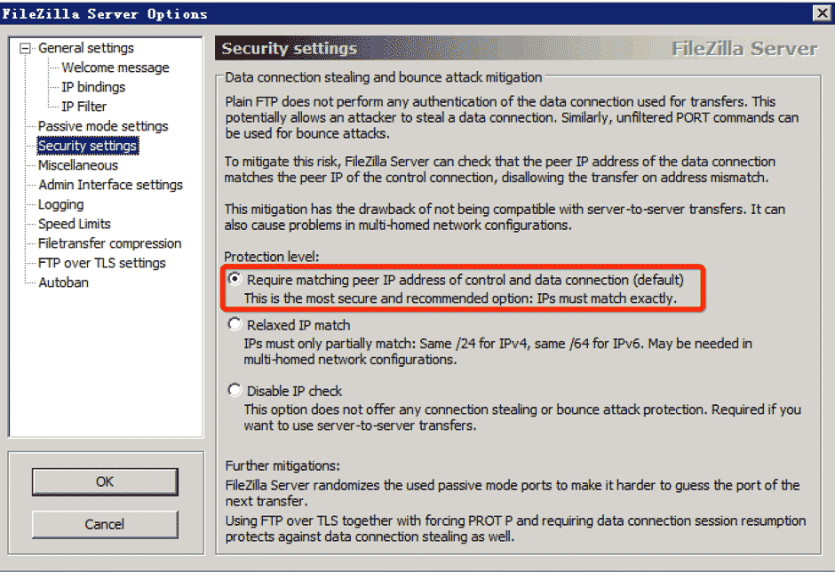 FTP Bounce 攻擊是一種利用 FXP 功能的攻擊形式,默認情況下服務器未關閉相關功能,建議將相關功能設置為阻止。